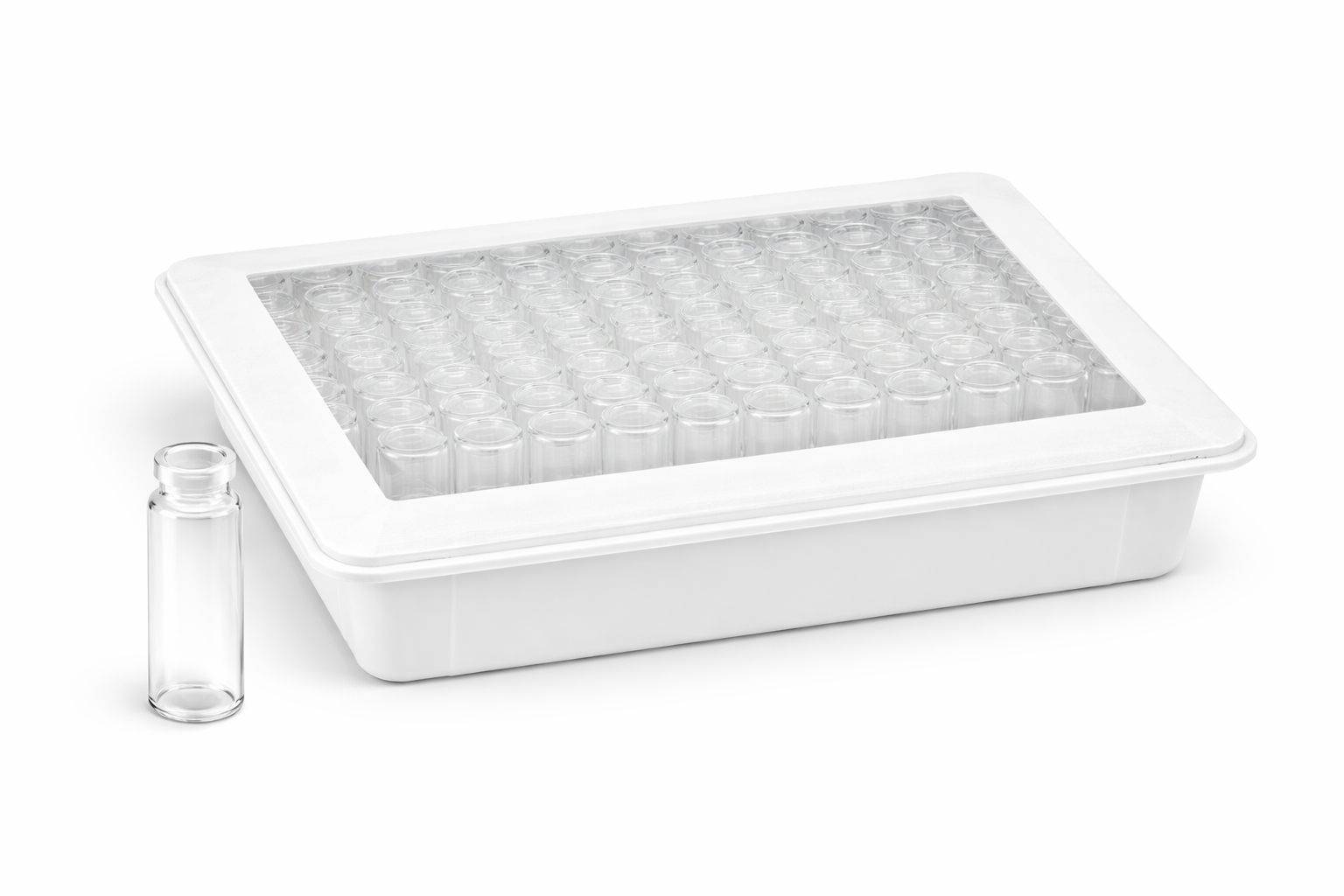 ReCon-X 10 mL clear glass research sample vials are supplied in original box quantity for internal laboratory workflows, sample handling, and laboratory packaging use.